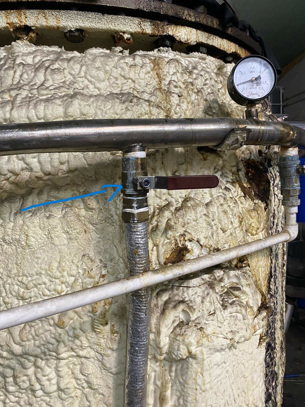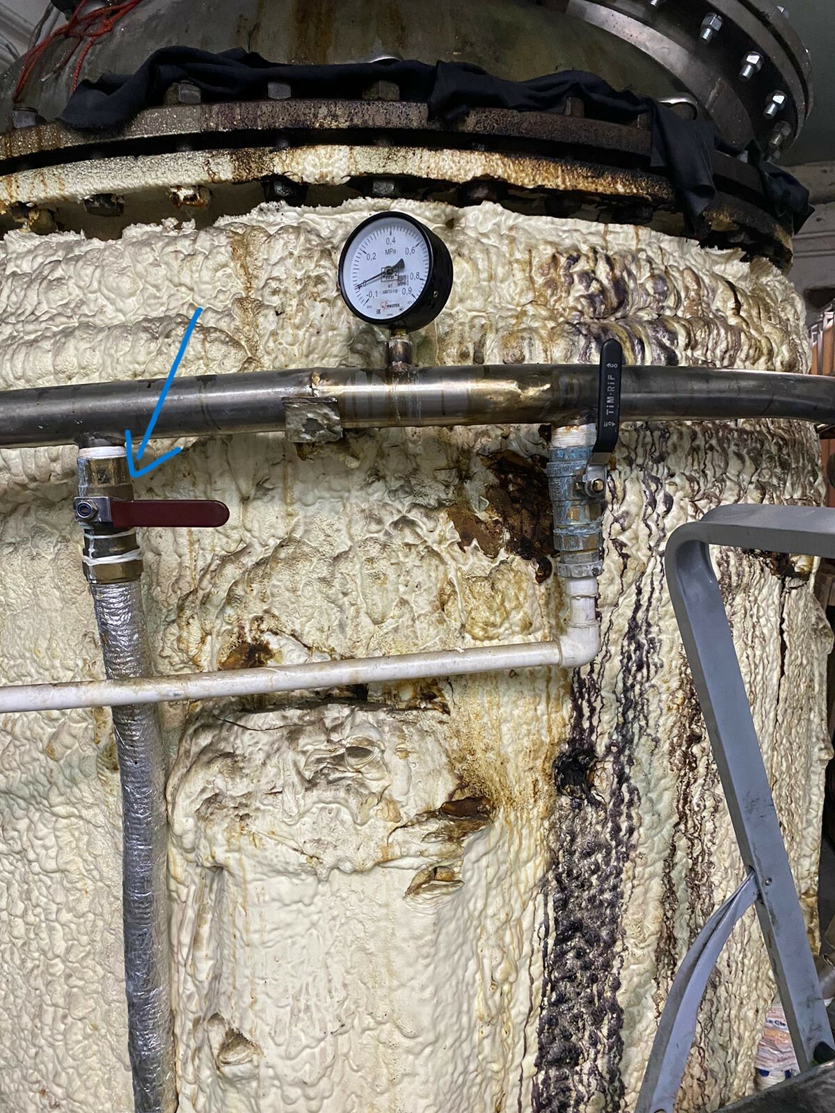 9). Догоняем температуру в реакторе до 80 градусов, выключаем парогенератор, закрываем верхний красный кран и нижний красный кран и варим 1 час 45 минут.