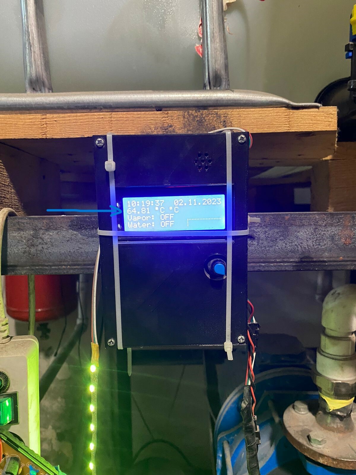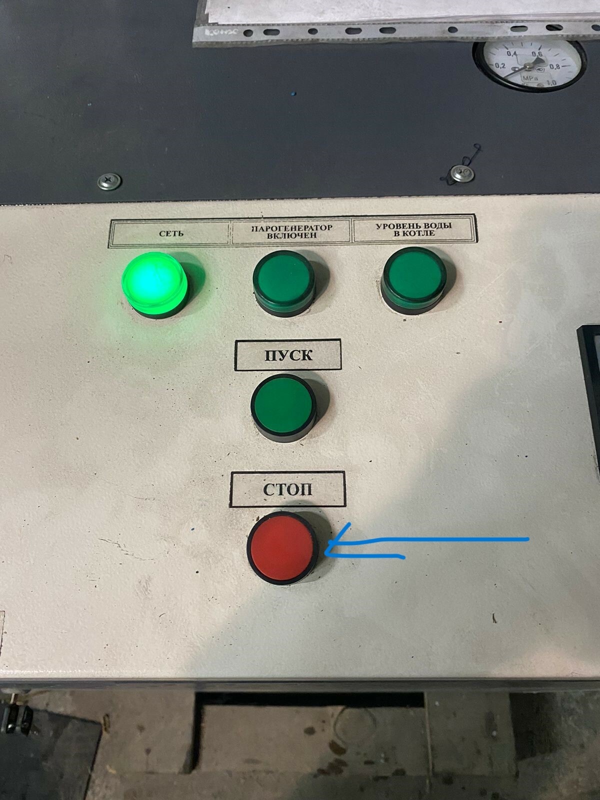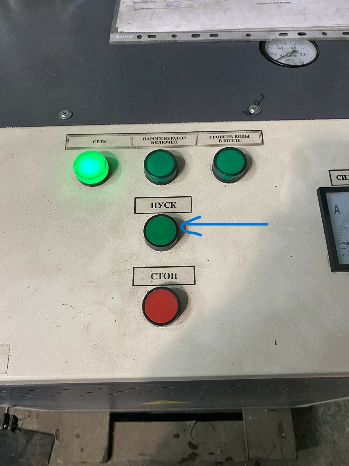 4). Включаем парогенератор, открываем верхний красный кран и снизу левый черный кран.