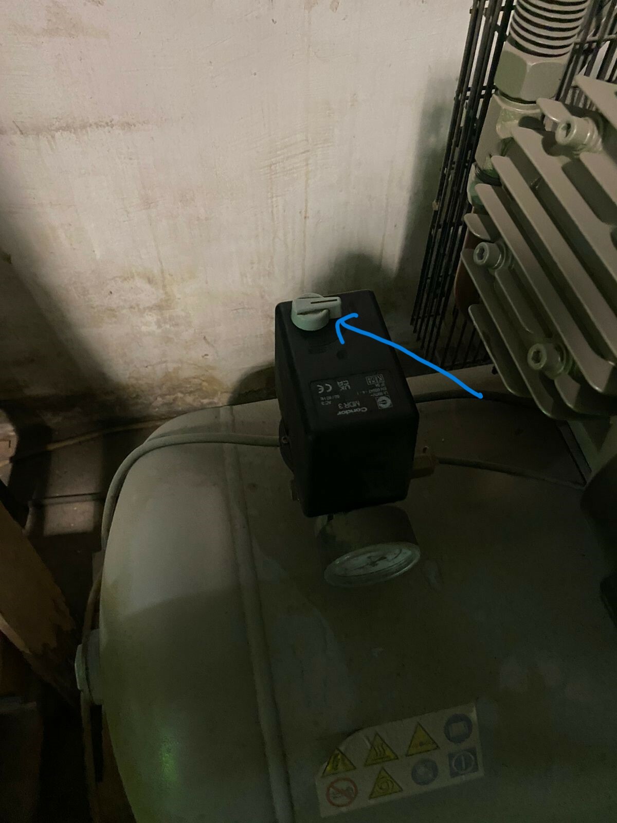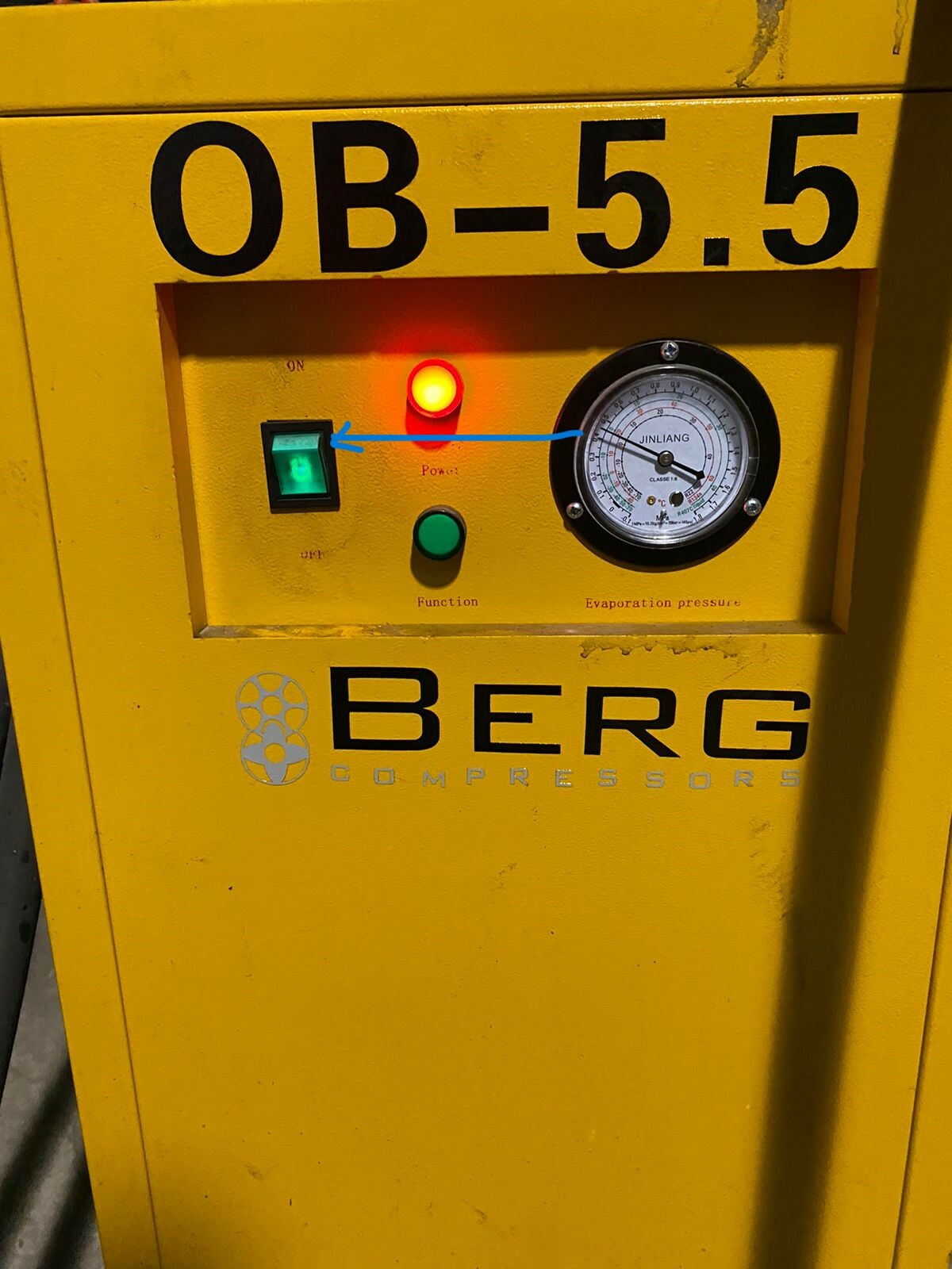 14). Включаем на щитке вытяжку, включаем осушитель, включаем компрессор, открываем главный кран снизу, открываем кран слива, открываем воздух.