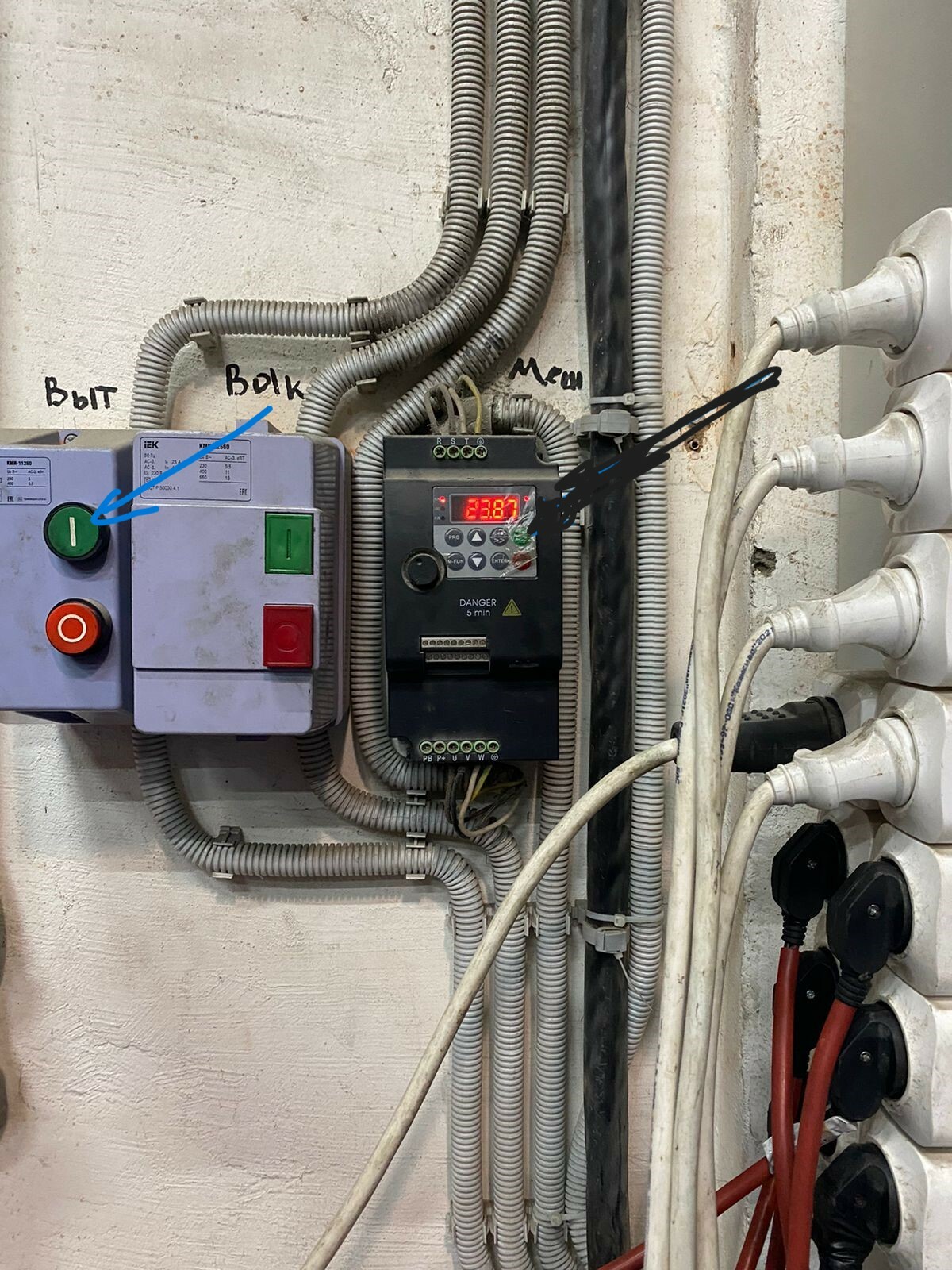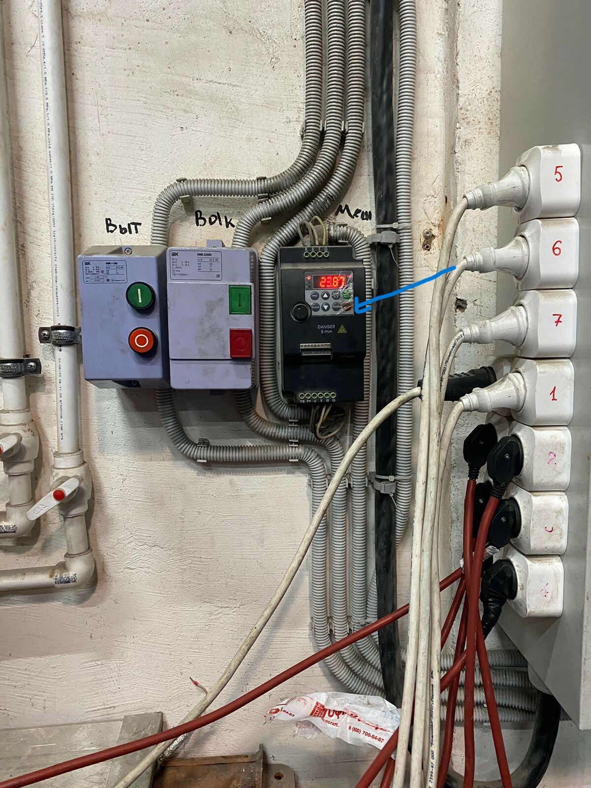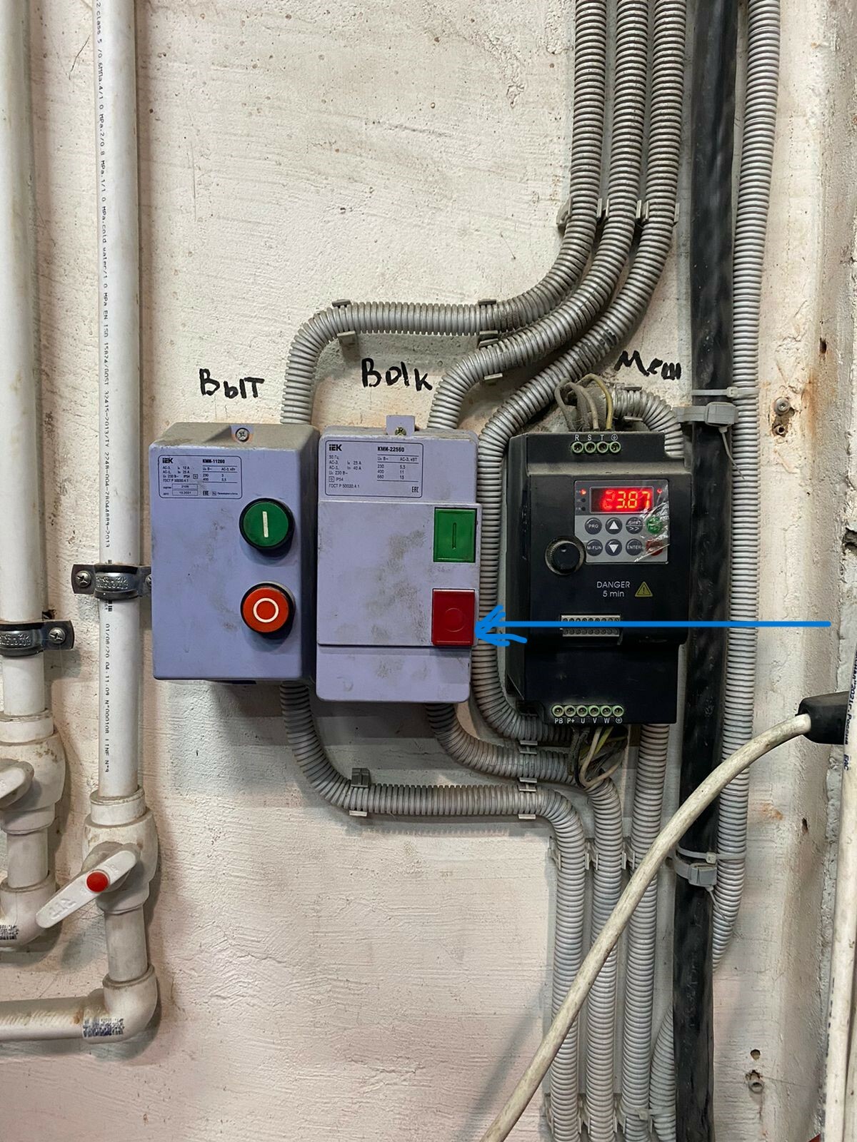 13). Выключаем на щитке мешалку, выключаем дальний красный кран снизу.