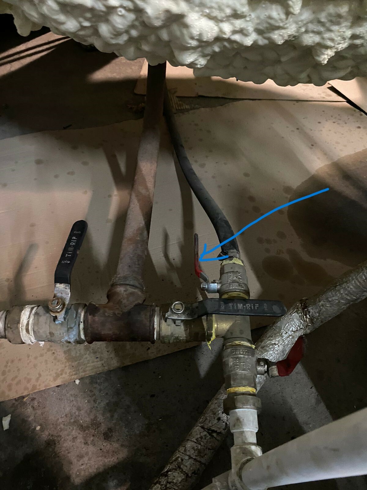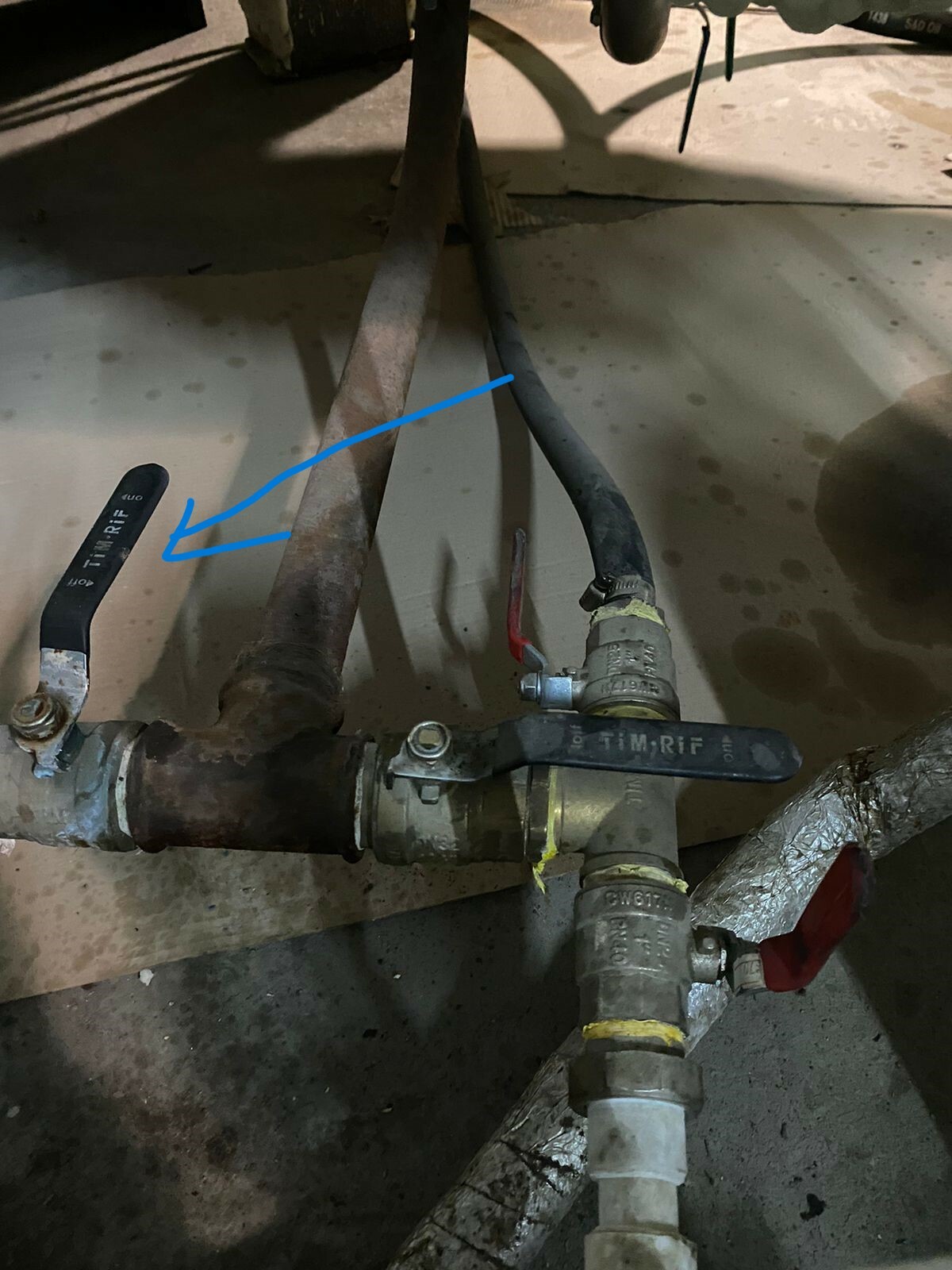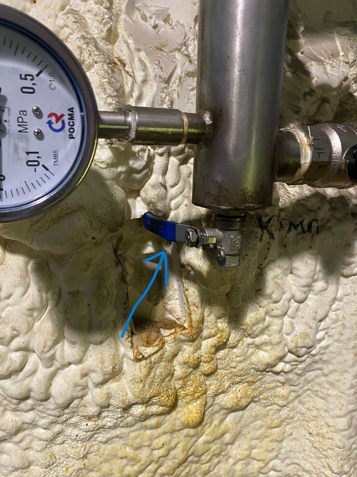 5). Как наберется вода в емкость, закрываем черный кран, далее открываем нижний красный ближний кран(давление не должно превышать 0,2).